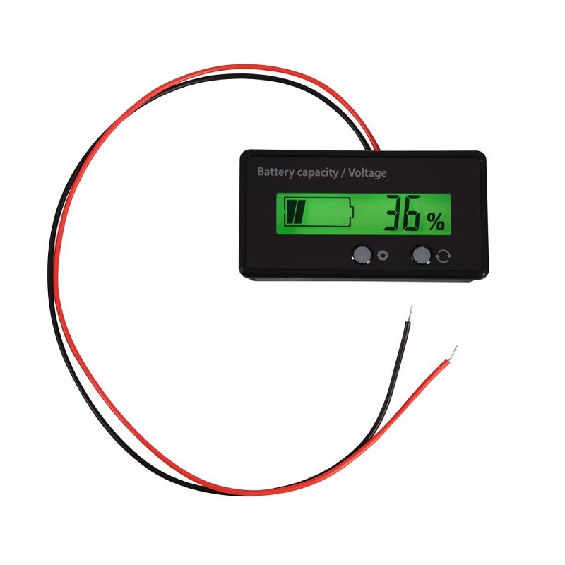 Featuring a clear LCD screen, the tester displays both voltage and remaining battery capacity as a bar graph and percentage. It supports a wide input voltage range and automatically adapts to 12V, 24V, 36V, or 48V systems. Its compact design and easy panel mounting make it a convenient addition to any energy management system or mobile power setup.