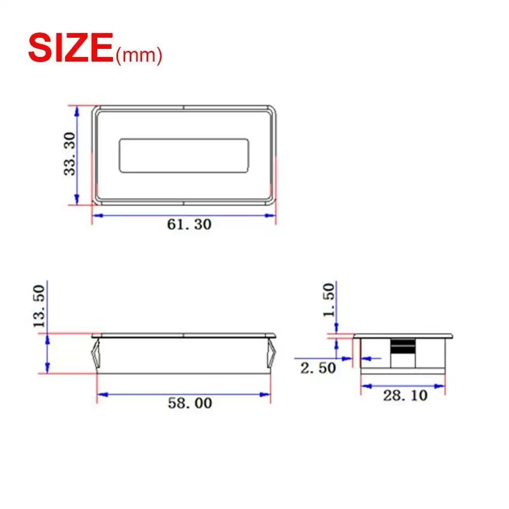 - Mounting hole Size: 58 x 28.1mm