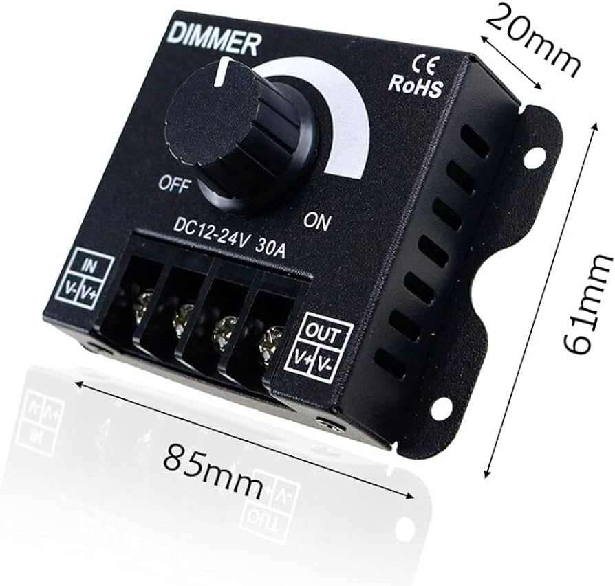 Our this led dimmer mainly used to adjust the light brightness of your single color led strips depending on your actual requirement. With it, it not only can provide you with a soft, stable light to use, but also can avoid rush current and protect your led lights being damaged. Besides, It’s also easy to install and simple to operate with a knob controller, convenient for you to use in home.