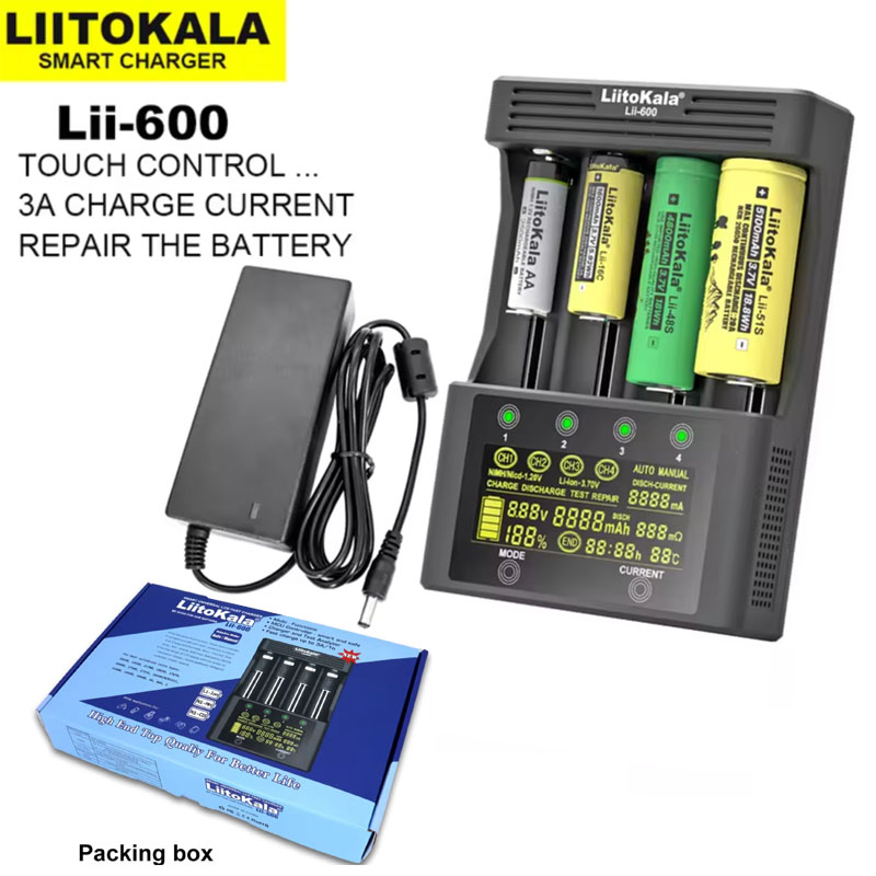 LiitoKala Lii-600 LCD Battery Charger and Capacity Tester 4 Slots For (Li-ion 3.7V) (NiMH&NiCd 1.2V)