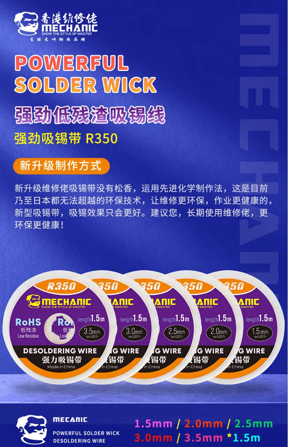 MECHANIC Solder Wick 2mm (R350) Desoldering Braid Wire Tin Remover BGA Welding