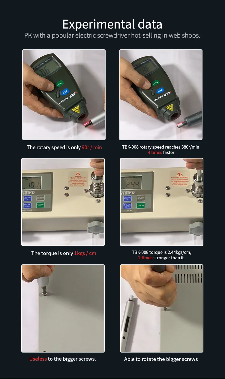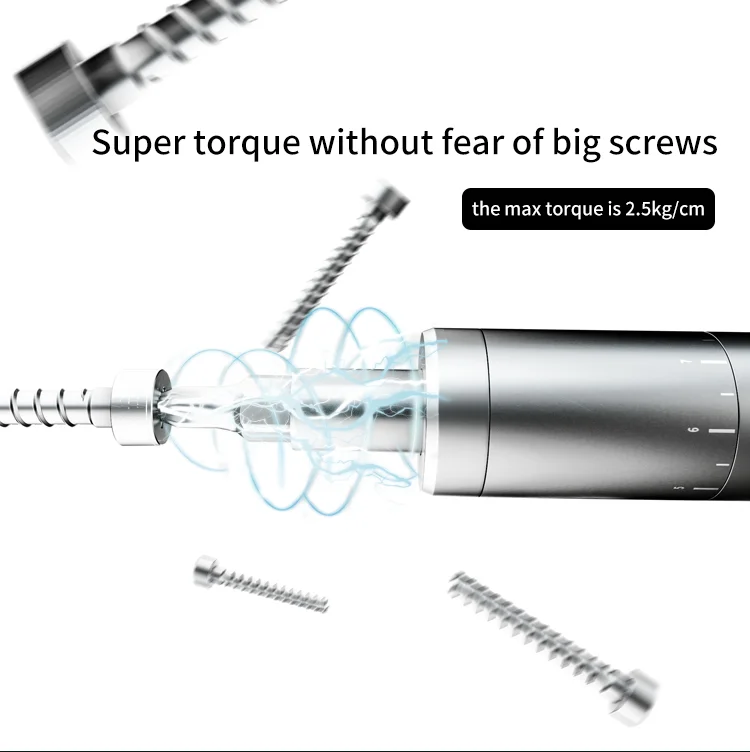 Super torque without fear of big screws the max torque is 2.5kg/cm.