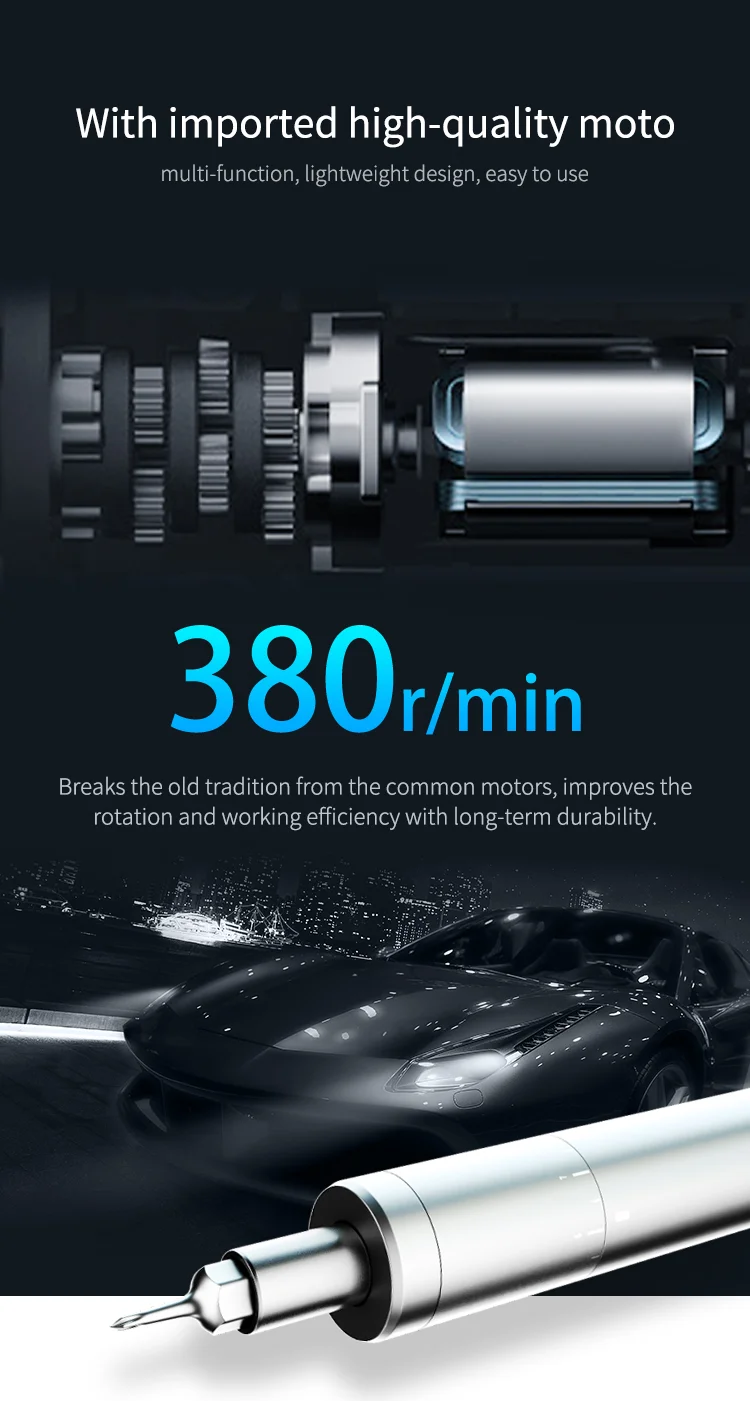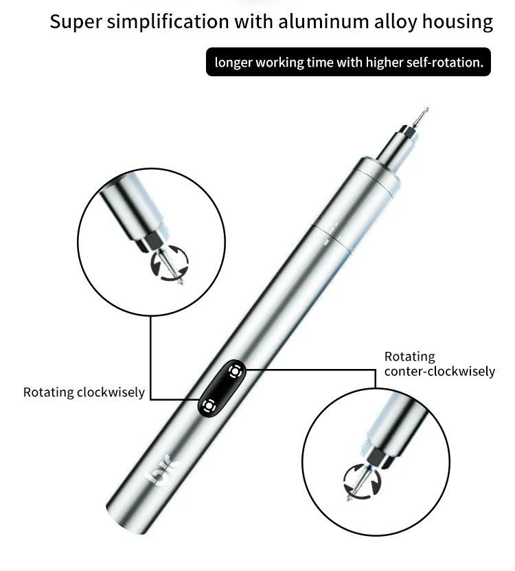 Super simplification with aluminum alloy housing longer working time with higher self-rotation.