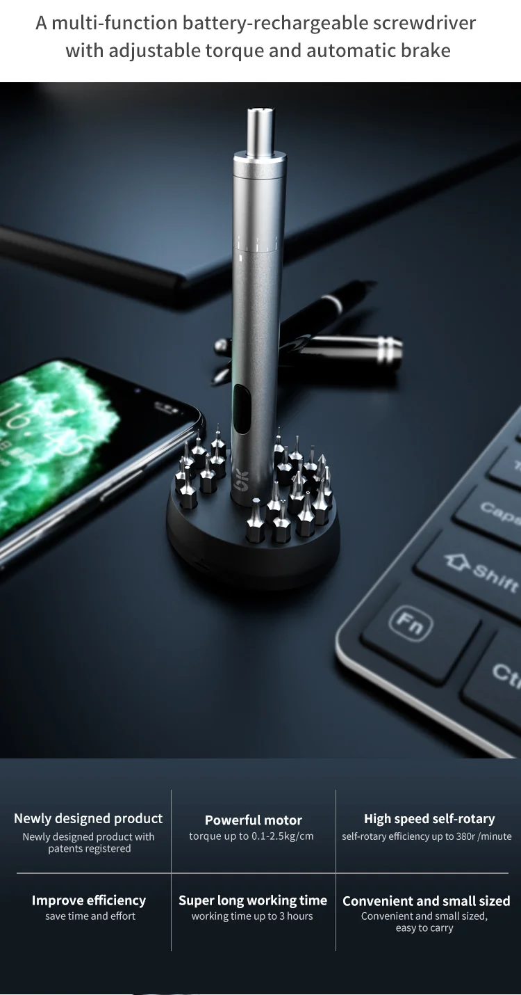 Tbk-008 Electric Mini Portable Dismantling Screwdriver Rechargeable Adjustable Position For Tablet Laptop Phone Repairing