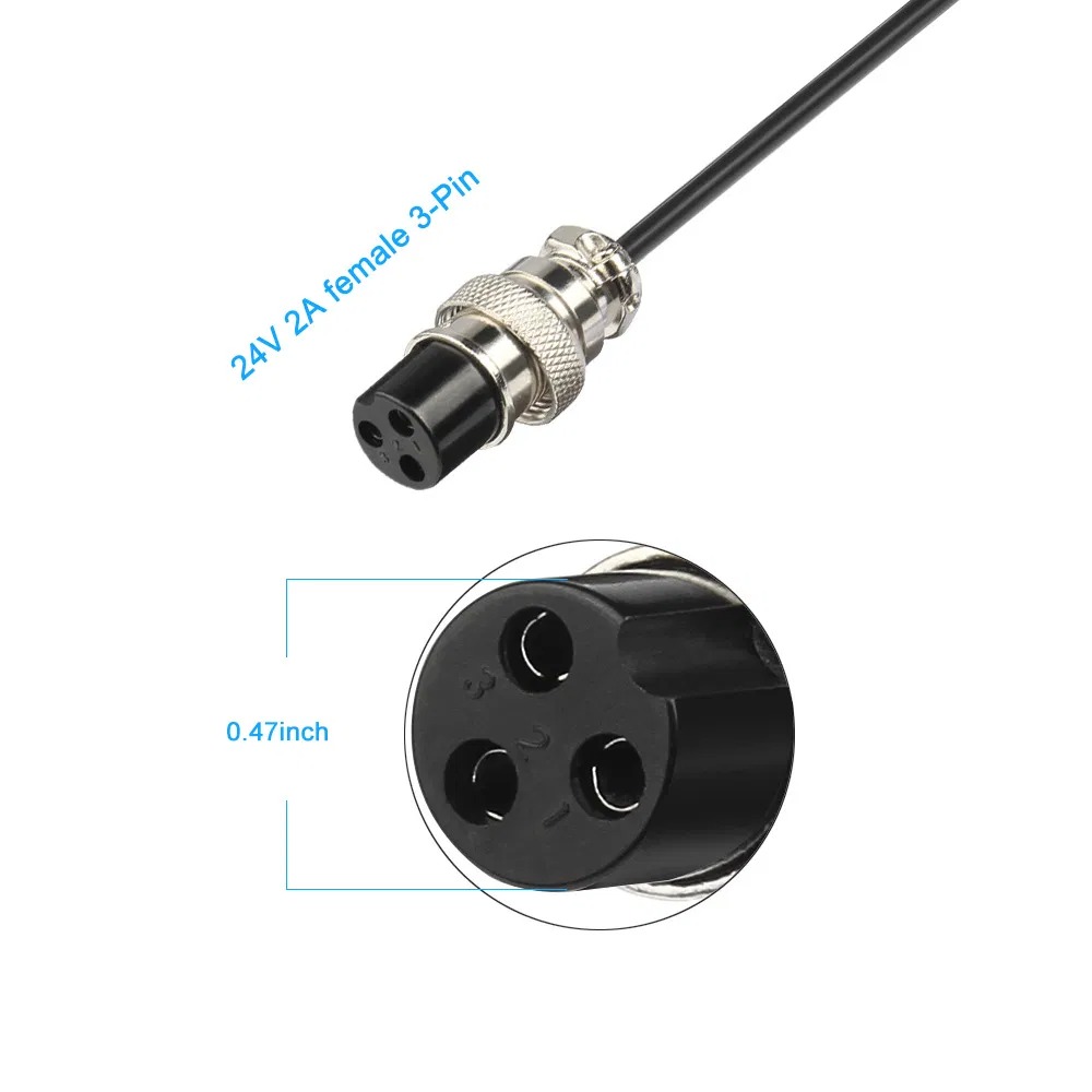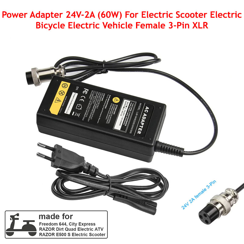 Power Adapter 24V-2A (60W) For Electric Scooter Electric Bicycle Electric Vehicle Female 3-Pin XLR