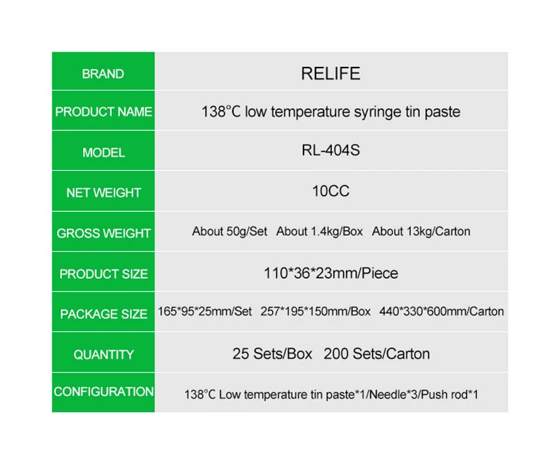 Relife (RL-404S) Solder Paste Tin Cream For PCB BGA SMD 10CC (138C)