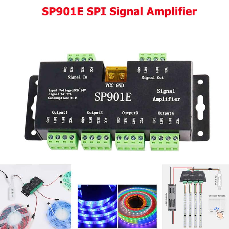 SP901E SPI Signal Amplifier Repeater 4CH( DC5-24V) For Addressable LED Magic Strip